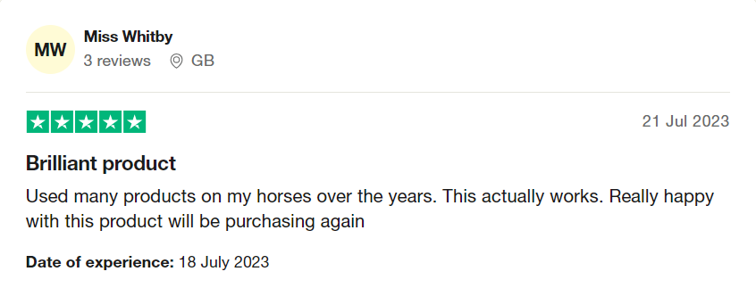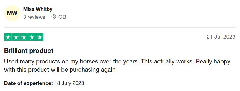 “”I’ve noticed a visible reduction in the number of flies on him and as a result haven’t been using his fly mask very often”