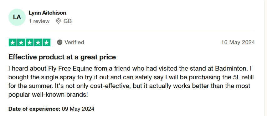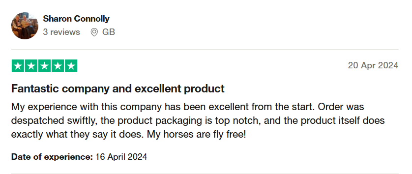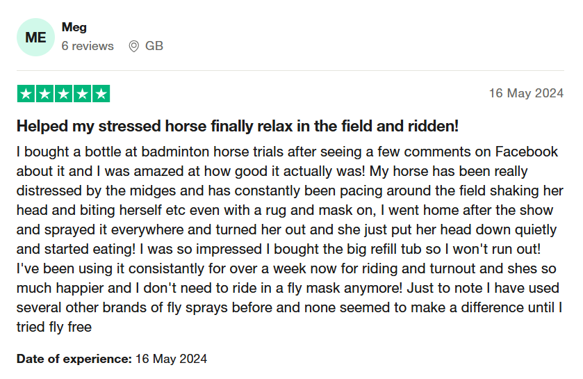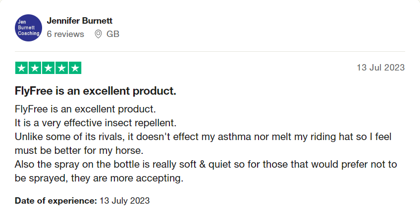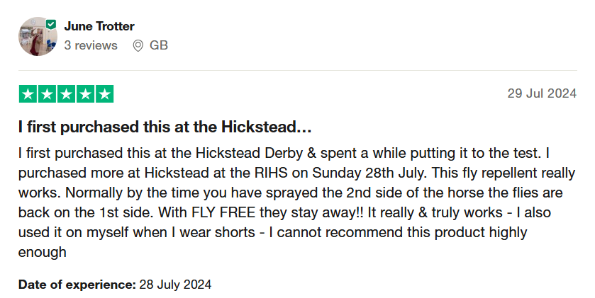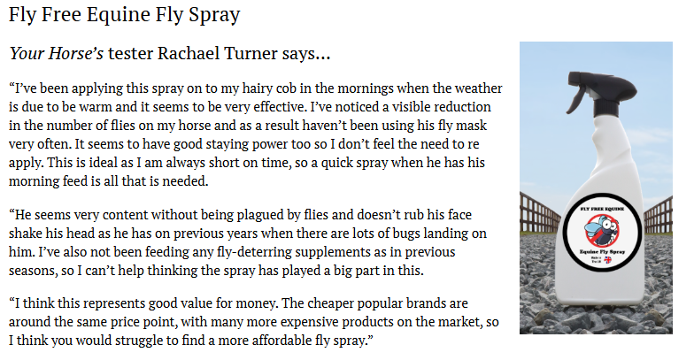“Fly Free Equine is an effective fly spray that lasts. We’ve had plenty of success with the product and would recommend it to anyone!”