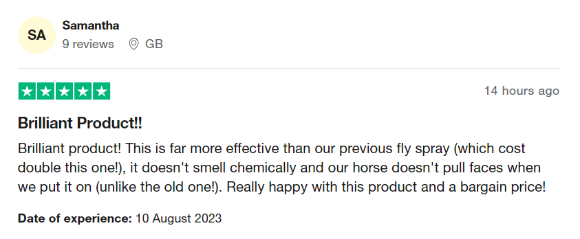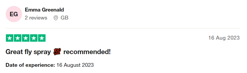 “He seems very content without being plagued by flies and doesn’t rub his face shake his head as he has on previous years when there are lots of bugs landing on him. I’ve also not been feeding any fly-deterring supplements as in previous seasons, so I can’t help thinking the spray has played a big part in this.”